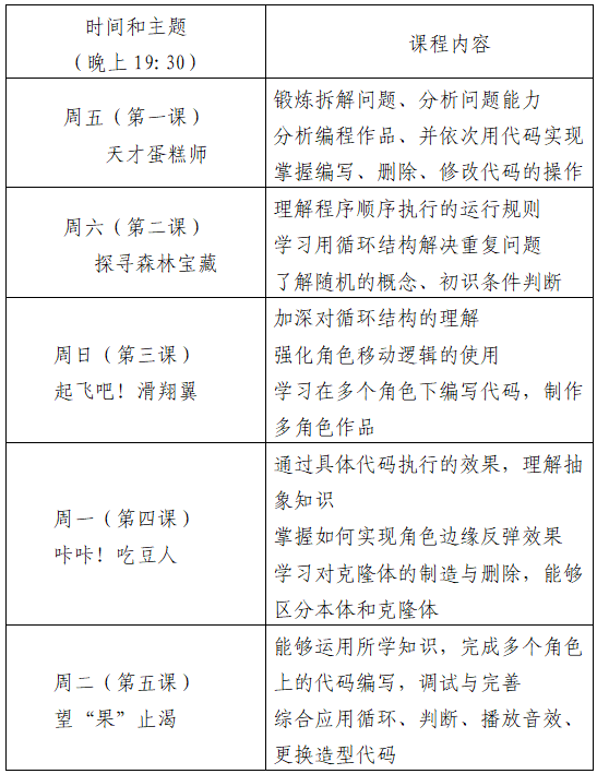 (二)活动要求:通过开展线上学习活动,使学生在规定时间内完成编程基础课程的学习,提升学生编程实践能力,推动少儿编程能力的普及。